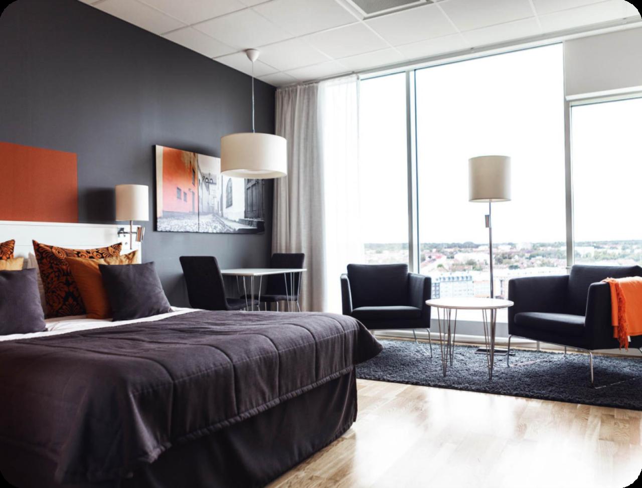 Enjoy the best views from Linköping's tallest building -Tornet. Just an eight-minute walk from the central station is Sky Hotel Apartments Tornet. It offers 70 hotel apartments of different sizes on six floors. If you want a really gorgeous view, you should book our rooms on Top Floor, on floors 15 and 16. Check-in takes place via Self Service Check-in where you collect your key via our key box in the lobby. All rooms have a fully equipped kitchen.