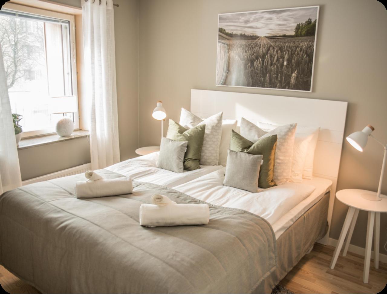 For an even higher standard, and a unique location we have apartments by the small square Hospitalstorget. These 12 apartments have contemporary, sophisticated interiors, fully tiled bathroom with washing machine and clothes dryer, and high-quality materials. We invite you to experience our Executive apartments.