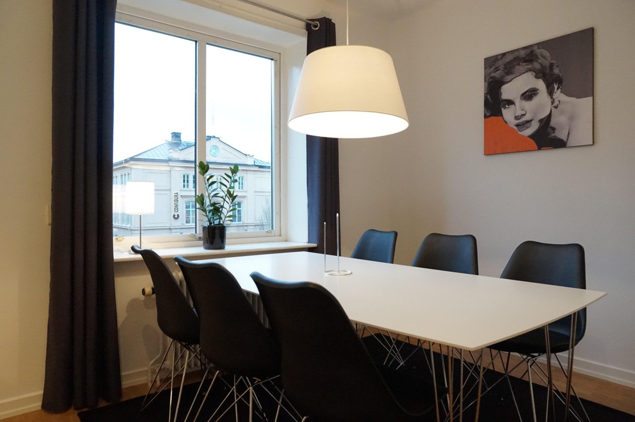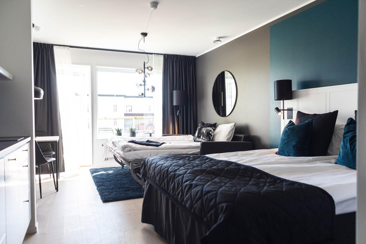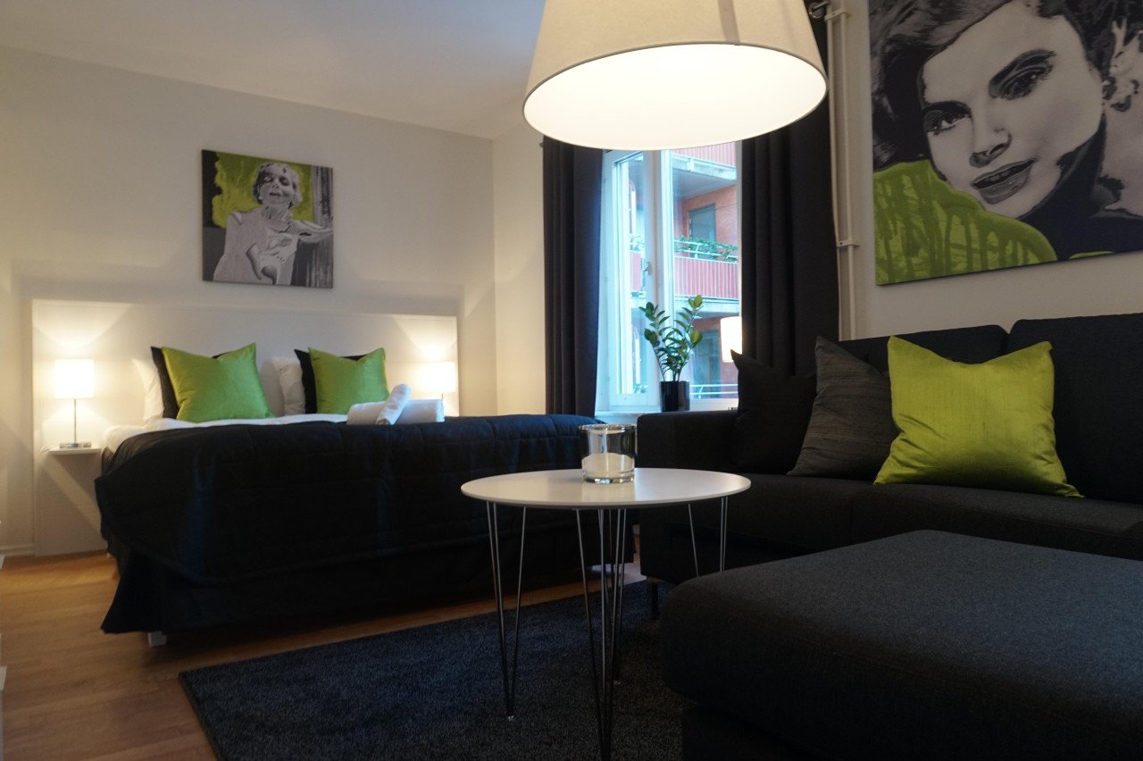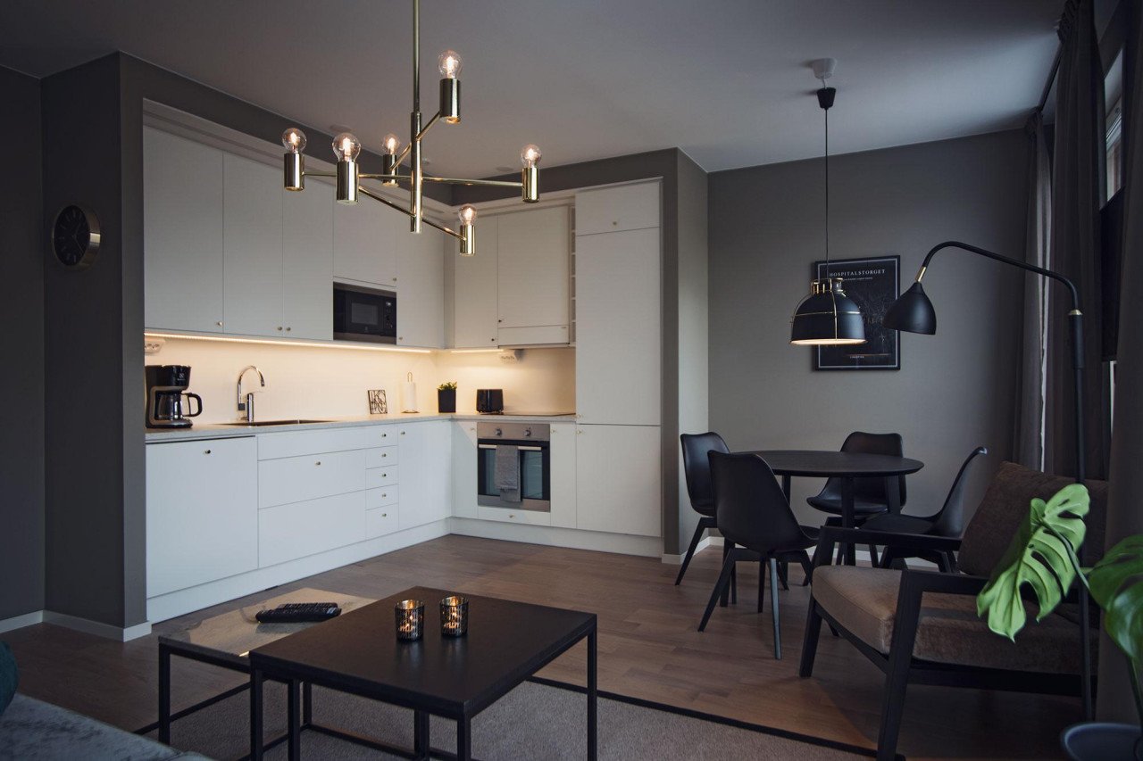 Våre standardleiligheter har et separat bad og et fullt utstyrt kjøkken. Hver leilighet har en gjennomgående, moderne skandinavisk design, som sikrer et stilfullt og komfortabelt opphold.